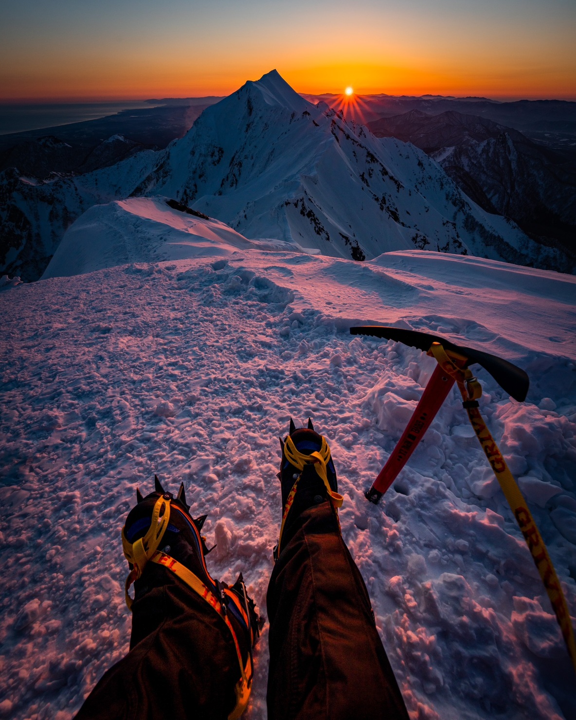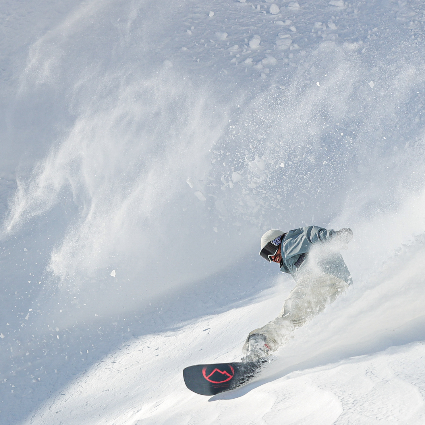 この写真は、山の対面から望遠レンズで被写体を撮影しました。よく見る写真ではなく、少し違った構図にする意識をして撮りました。影になっている斜面がバックになるようにして、被写体はもちろん粉雪にも光があたり綺麗に見えるように撮りました。