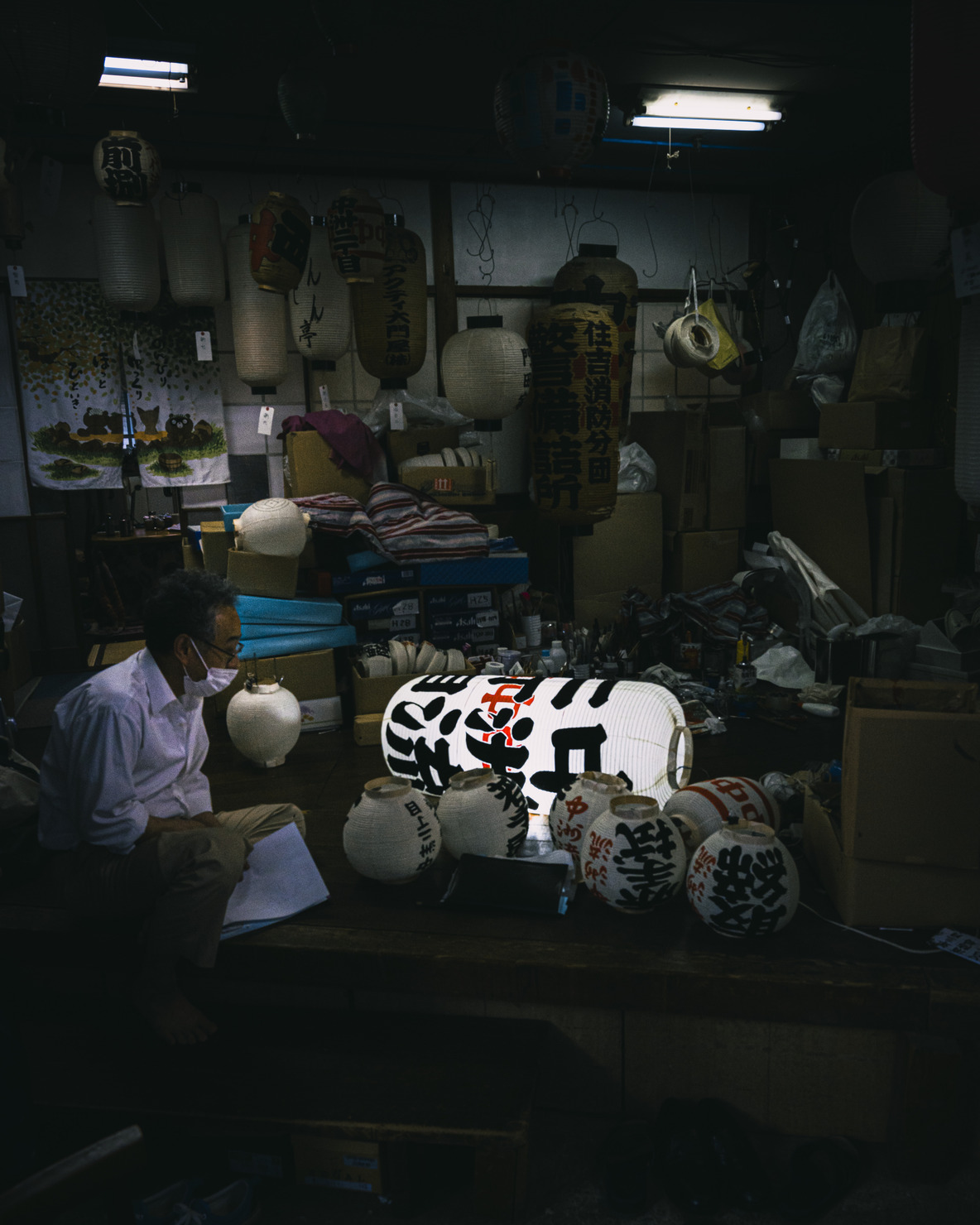 ランタンを木々に見立てたタイトルのようにランタンと人に迫力を持たせる為、トリミング。風景を暗めに撮ったので明るさ、コントラスト、ホワイトバランスを調整して全体を見易くしました。