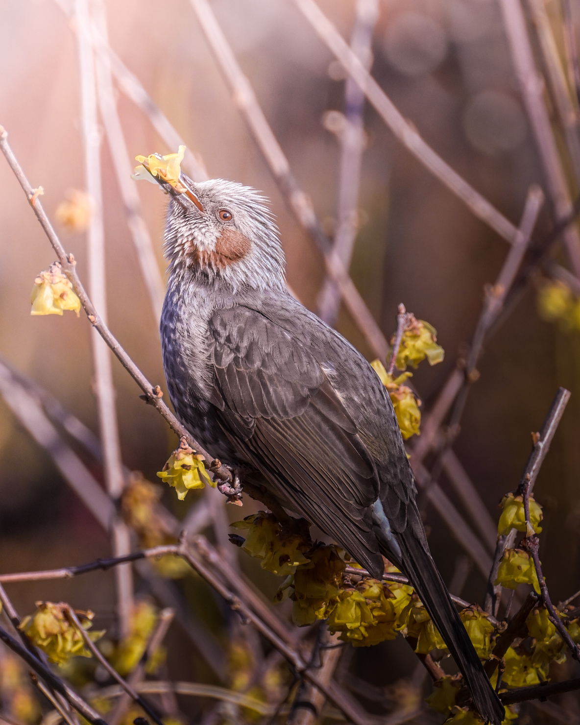 この写真は、娘の入学記念として撮りました。土手の下側から撮ったため、桜の裏側が暗く写ってしまいましたが、部分補正を使い明るく調整しました。また、桜の幹や地面が入らないようにトリミングし、より高く跳んでいるように印象付けました。
