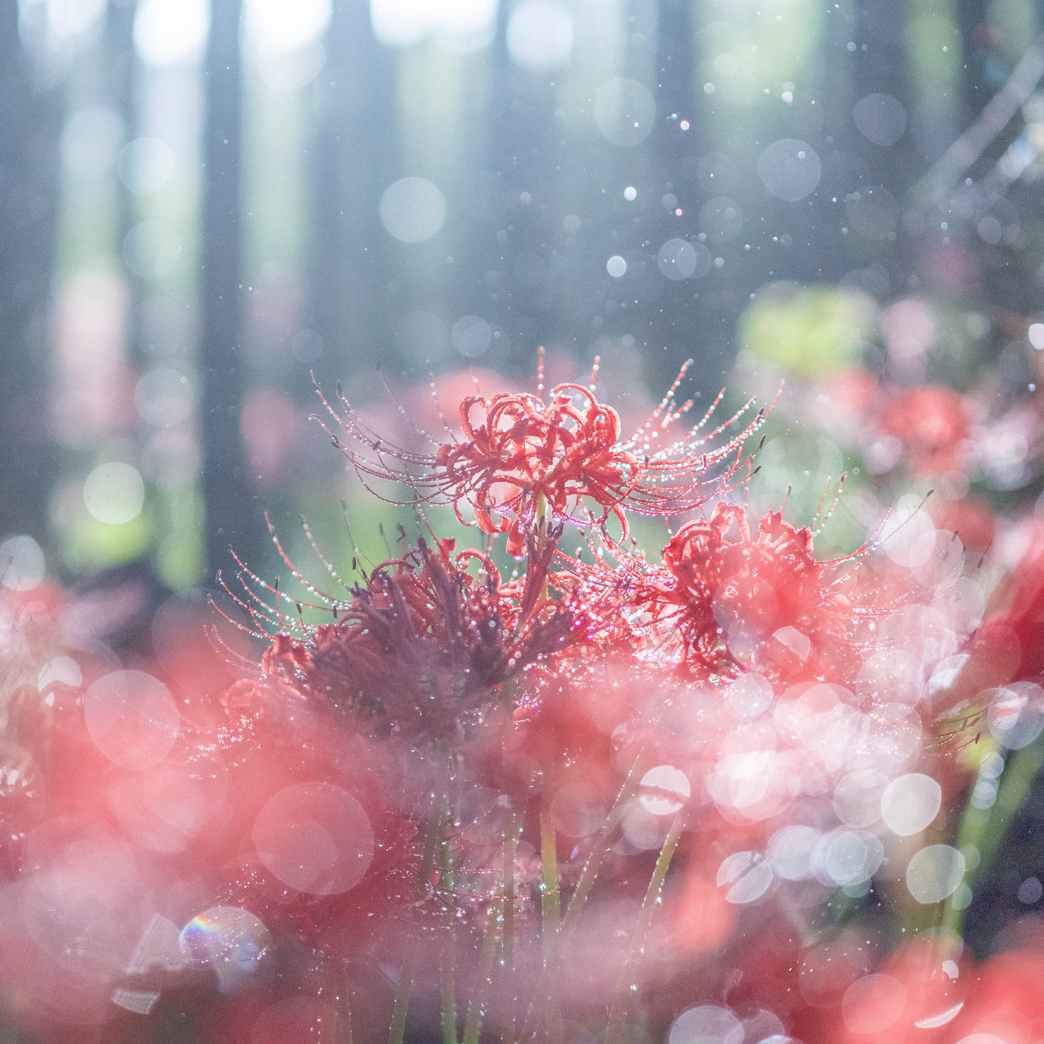 豪雨のなかで、西の空は晴れていてキレイな光が差し込みました。その光で浮かび上がる雨粒のキラキラ感を出したかったので、露出補正を明るめにしました。夕方の光でしたが、夏の爽やか感を出すために色味を青+緑を感じるような形で調整をしました。