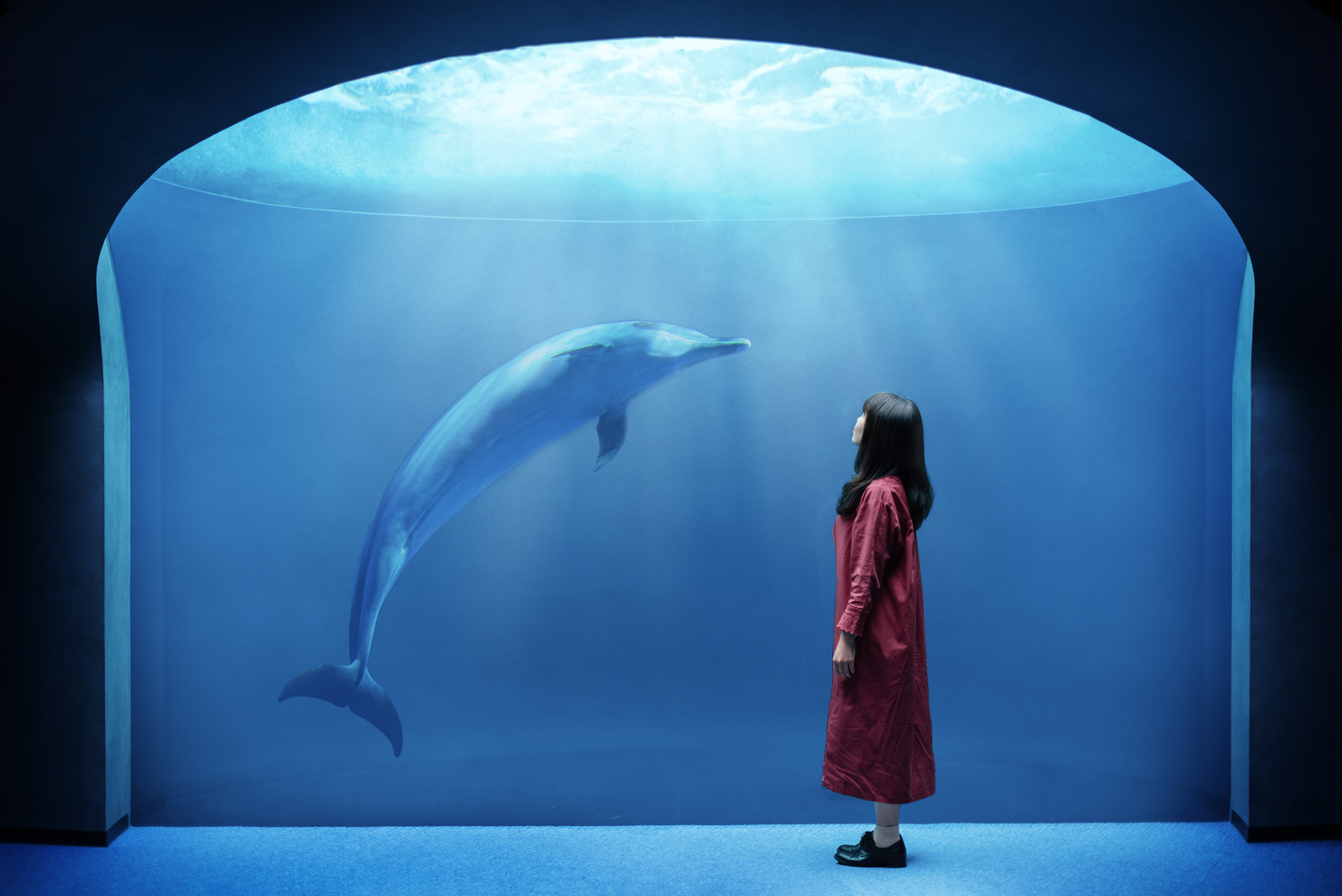 全体の色味が涼しい色で統一されていて美しく、リフレクションも綺麗に映っており、水族館ならではの雰囲気が伝わってきます。