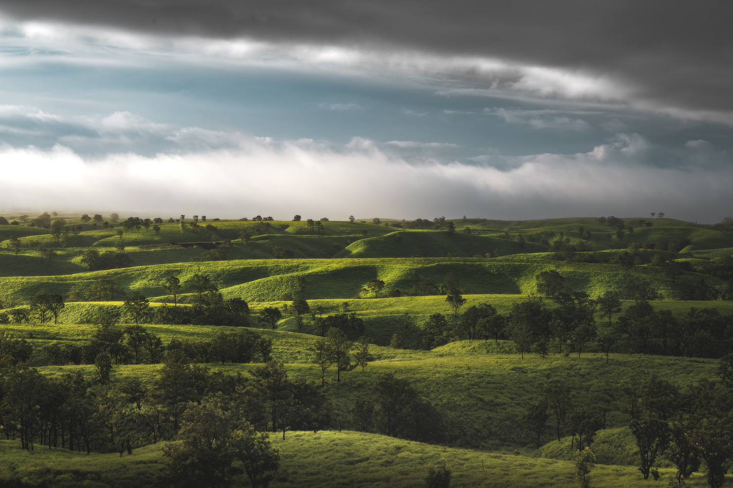 夏の早朝に撮影した写真です。隆起する大地に朝日が当たり気持ちの良い陰影が生まれます。その具合を強調しつつ全体のバランスを見ながら雰囲気を意識して仕上げました。